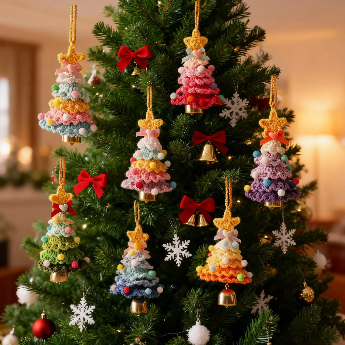 1. The Ultimate Festive Collection: Receive a stunning total of 22 high-quality items, carefully curated in a beautiful basket. The set includes: 1 decorative basket, 2 Christmas stockings, 3 knitted Santa hats, 3 Wishing Star jingle bells, 6 classic Christmas jingle bells, and 7 woven Christmas trees. Everything you need for a magical holiday decor.