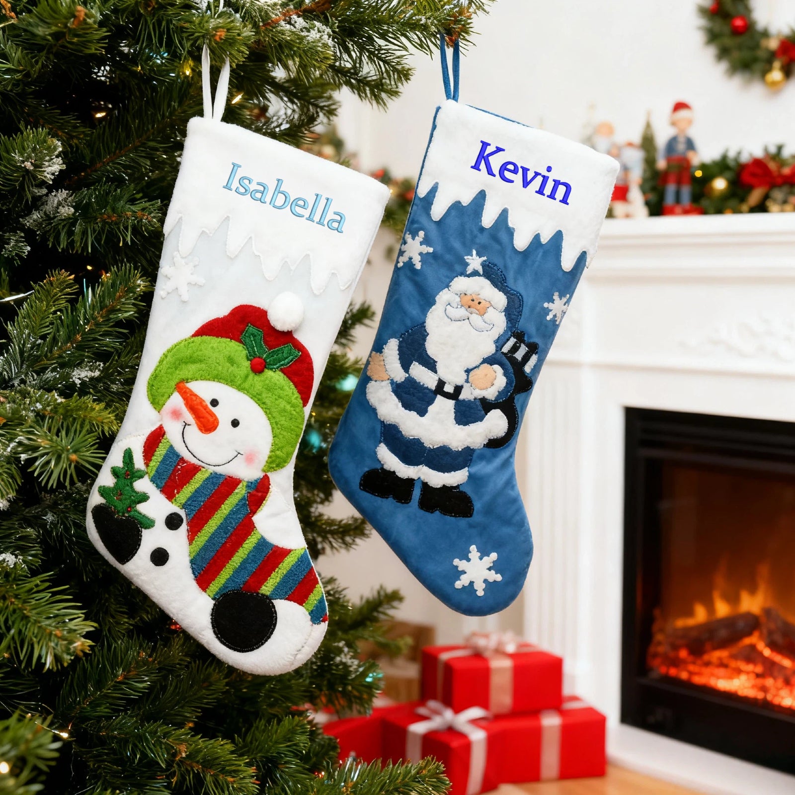 Customized Christmas Stockings with Embroidered Name Personalized Family Xmas Stocking Hanging Fireplace Stockings Santa Claus Snowman Styles for Home Decorations 18 Inches