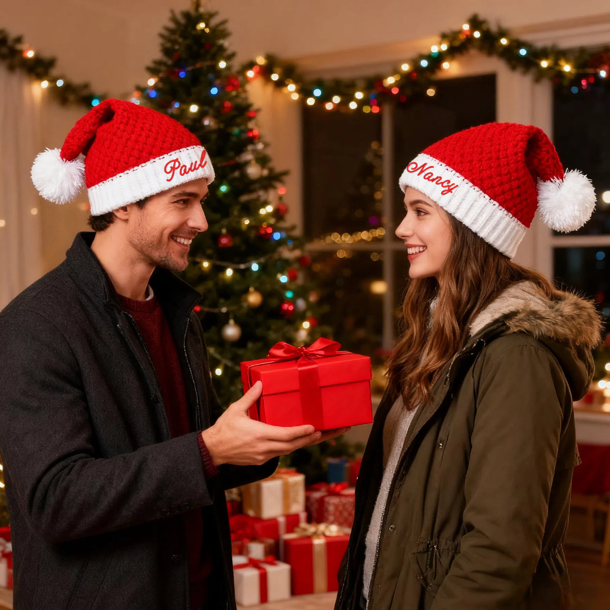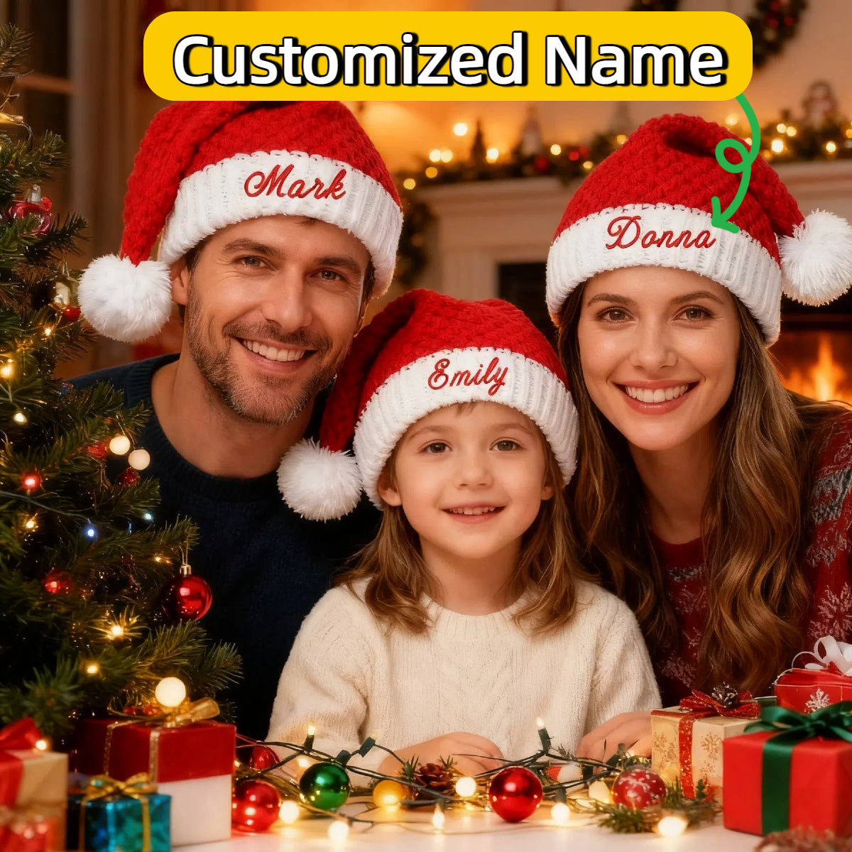 Personalized Christmas Hat with Name Knitted Santa Hats for Women Men Kids