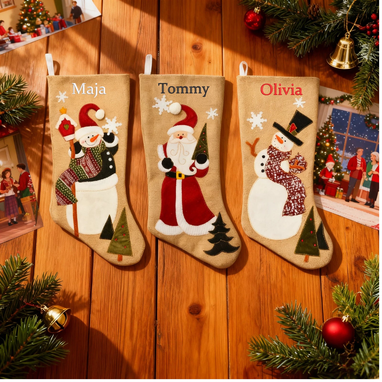 1.Make your fireplace Christmas decor truly special with our Customized Xmas Stocking, featuring beautifully embroidered names for a heartfelt touch. These personalized Christmas stockings are designed to celebrate love and togetherness, turning holiday decorations into cherished family heirlooms.